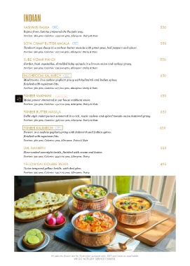 CHANNA PANEER 595 BAKED DELHI KULCHA 150 Garden fresh vegetables, shredded baby spinach in a brown onion and cashew gravy.